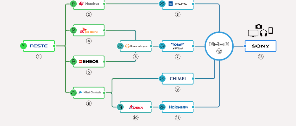 Sony bersama 13 syarikat antarabangsa telah menubuhkan rantaian bekalan global pertama untuk plastik boleh diperbaharui dalam produk berprestasi tinggi.