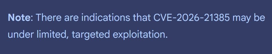Google turut menyatakan terdapat tanda eksploitasi berlaku di luar sana.