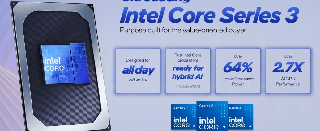 Intel hari ini mengumumkan pelancaran pemproses mudah alih terbarunya, Intel Core Series 3, yang direka khas untuk memberikan prestasi, hayat bateri, dan keupayaan AI.